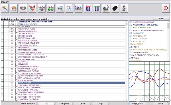- spectrums of minerals and gems, it allows to select according to individual biocompatibility a gem for permanent carrying or apply lithotherapy – healing treatment of organism by mineral radiated spectrum.