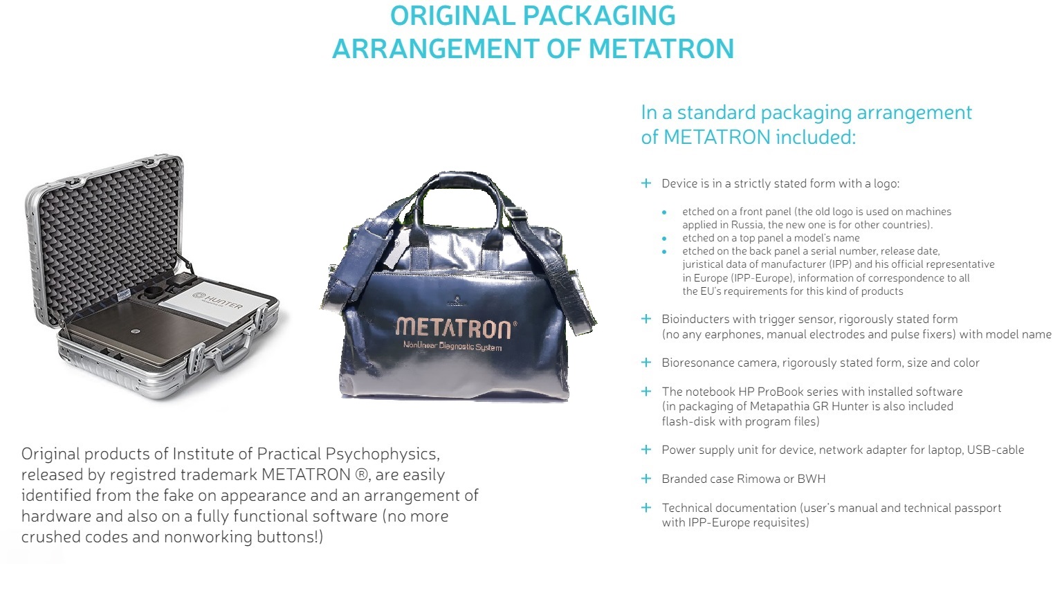 All functions and capabilities of the best and the latest Metatron Hospital bioresonance system are fully available in remote mode. Also, the upgraded Metatron Hospital can be used with the same features in two ways: in local mode with headsets or in remote mode. METATRON REMOTE® set contains: 1) original packaging of Metatron Hospital and 2) Medicomat quantum remote devices. New generation of software supports Russian, English, German, French, Spanish, Chinese and Japanese languages. |