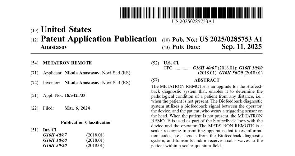 METATRON REMOTE® is a patent-protected (U.S. Pat. No. 20250285753) and trademarked Metatron Hospital system by Medicomat Limited, that enables remote health scanning and treatment at any distance.
